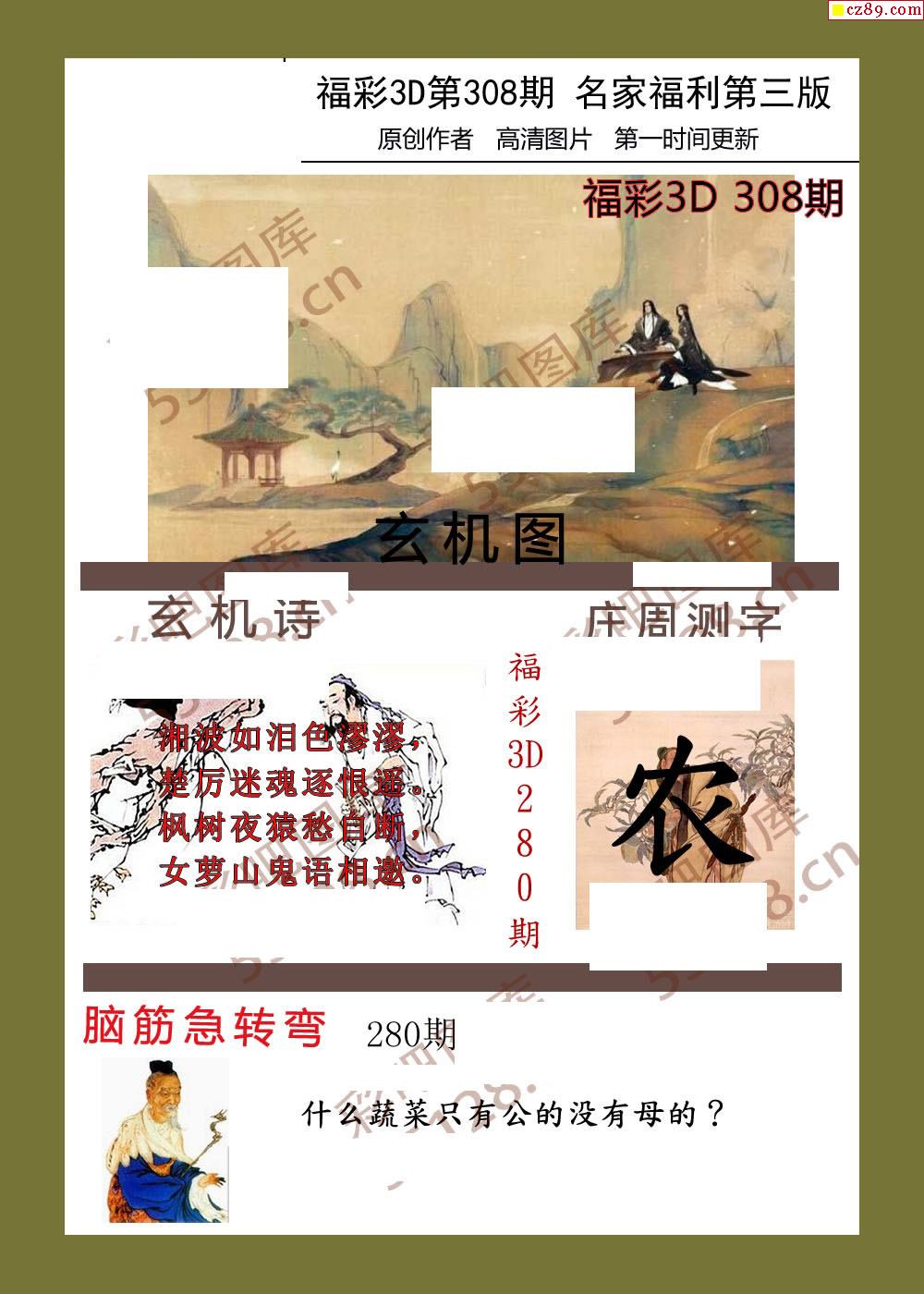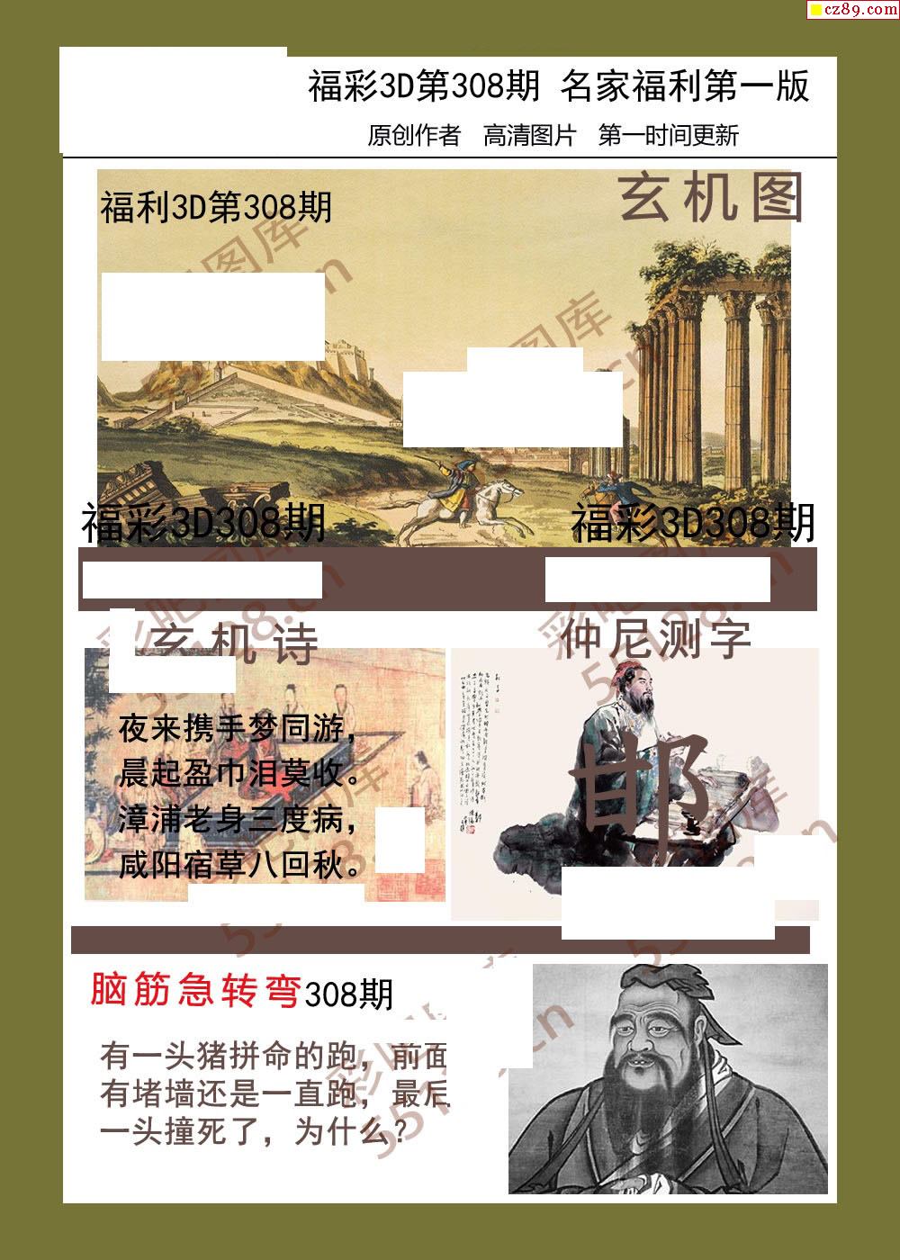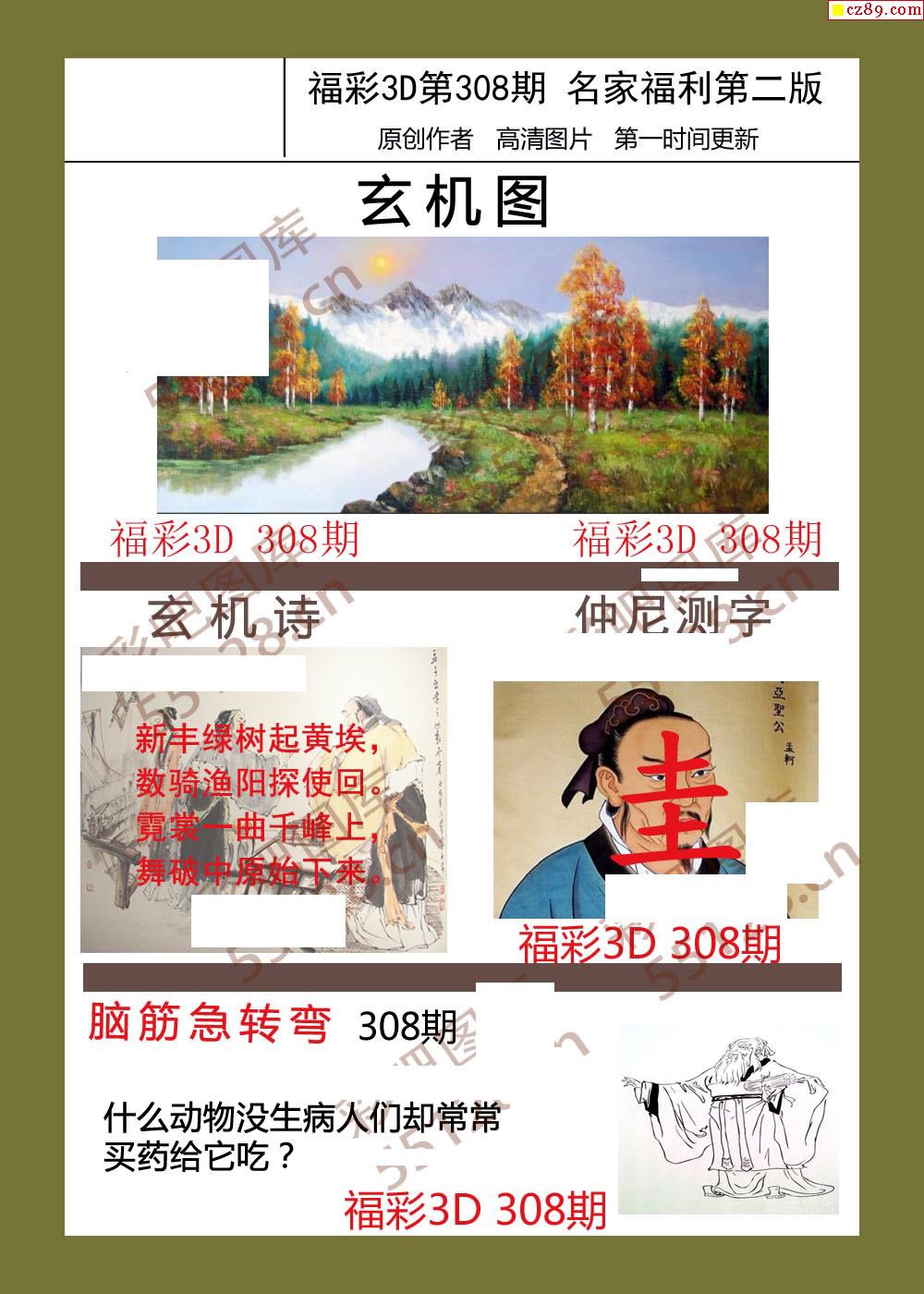 福彩名家福利彩票3d25年308期图谜