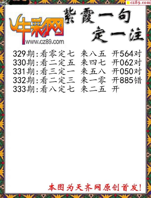 > 福彩3D2025333期紫霞一句定三码字图谜