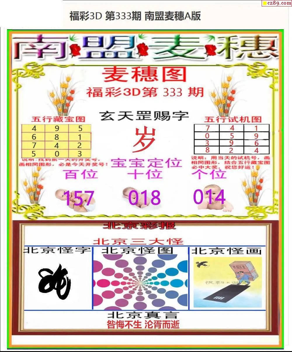 > 福彩3D2025333期南盟麦穗AB版+南盟扣号AB版