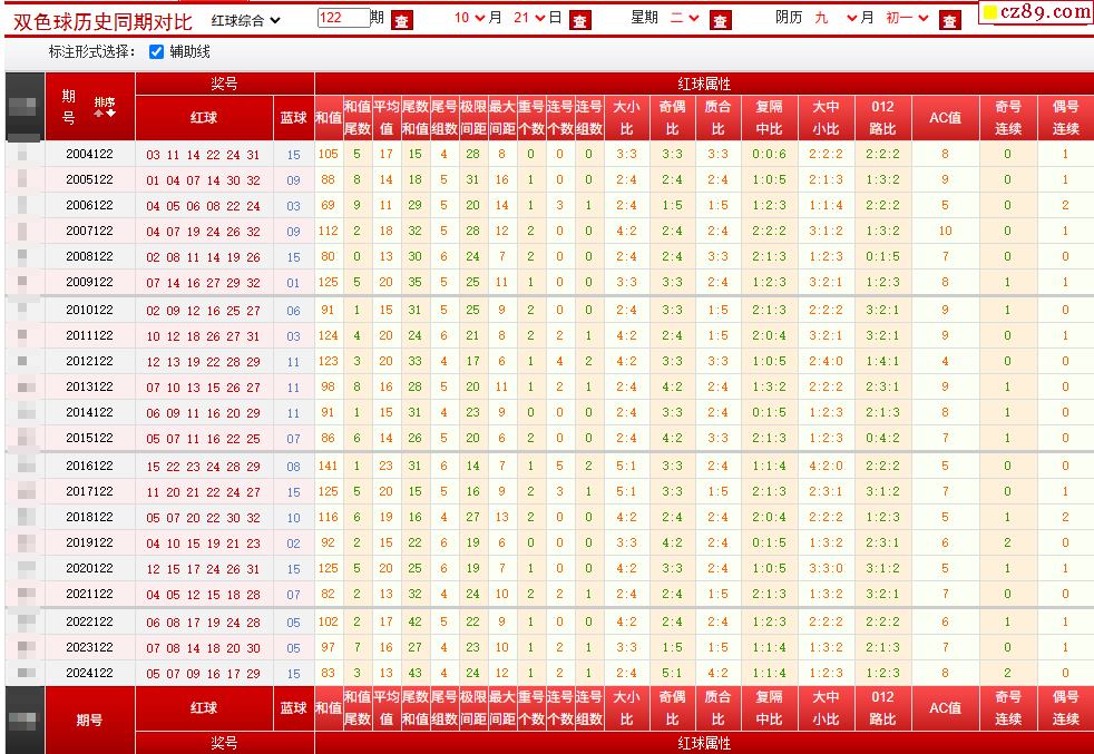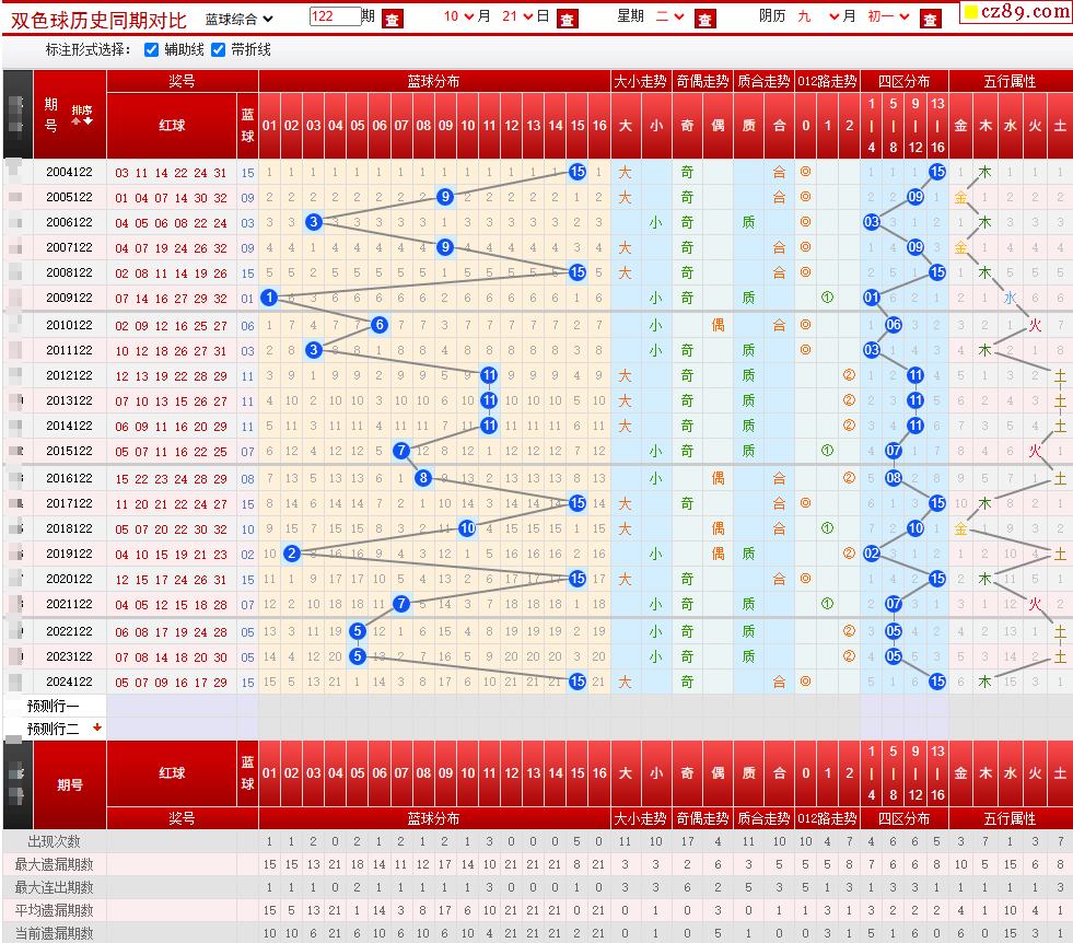 首页 > 双色球图谜 > 122期双色球历史同期对比图